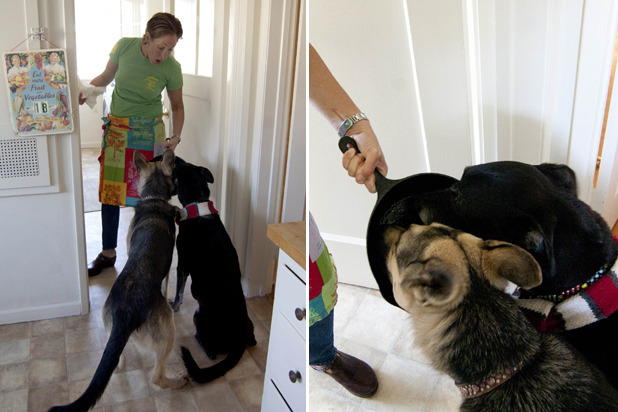 Drippings from the chashu pork don't go to waste, as Arrow and Mickey get dibs on the treat.