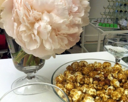 Peony-lined tables were graced with stacks of the books, while bowls of kid-friendly foods like caramel popcorn were scattered in between. It was a fun, food-filled night for moms and kids alike.