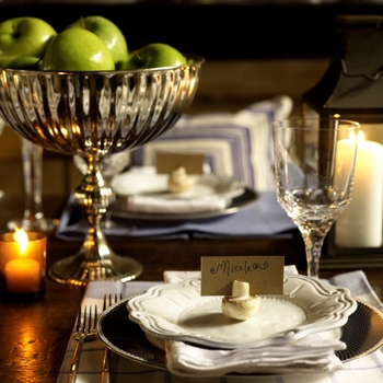 To create this whimsical mushroom place card holder, you need look only as far as your refrigerator. Inexpensive button mushrooms make the sturdiest (and cute-as-a-buttonest) holders. Just cut a slit lengthwise in the stem of each 'shroom, then slide in a hand lettered card with each guest's name. If your mushroom won't sit straight, you can always cut a little slice off the round cap to keep it stable. (Photo courtesy of William Geddes)