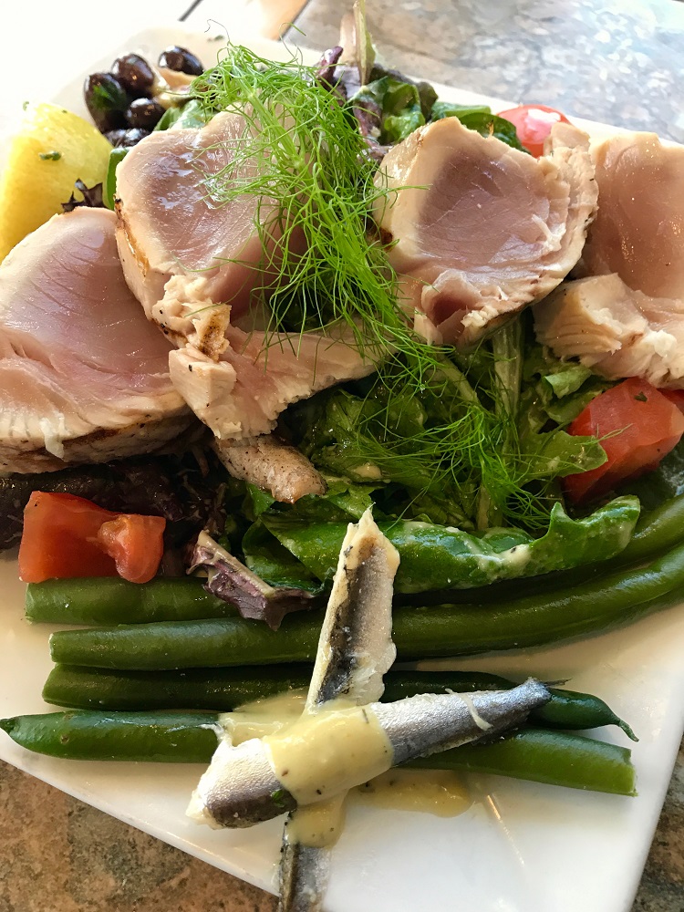 When you're ready for a luscious meal in Newport it doesn't get any fresher than dining dockside at Local Ocean while watching the daily specials being hauled in across the street. Like the grilled coho salmon over grilled romaine hearts, heirloom tomatoes, red onions, roasted corn, pumpkin seeds, and crispy black quinoa with a roasted garlic-lemon vinaigrette. Nor will their albacore tuna Niçoise disappoint. Or dive into the rich roasted garlic and Dungeness crab soup in a creamy clam base with Parmesan cheese. And there were raves about the panko-coated rockfish Italiano, served on a hoagie roll with salami, pepperoni, pepperoncinis, and mozzarella. This is the kind of place where you could happily eat your way through the entire menu. Local beverages, adult and otherwise, round out a delightful eating experience.