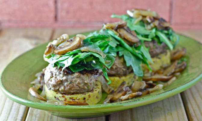 The winning recipe for this week's SWAT goes to Kristin of (Food Fash). She started by rethinking the bun, and created a burger topped with arugula, mushrooms, onions, and spinach — on a polenta bun. Move over ramen burger.