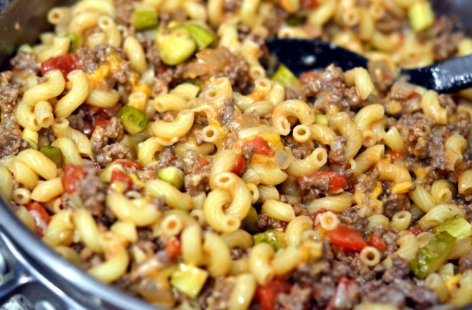 Think beyond the obvious when you're making your next burger. Christine Carlisle (blogger at Chew Nibble Nosh) sure did. She didn't make a traditional burger with meat inside two buns she made cheeseburger pasta. This recipe has all of the same tasty ingredients that a customized burger would (onion, garlic, Worcestershire sauce) but it is cleverly incorporated into a pasta dish.