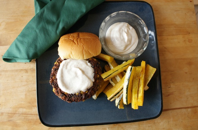 This is a fun take on a veggie burger using corn and black beans in a recipe packed with vegetables and topped with tangy yogurt. Click here for the recipe.