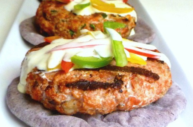 Salmon Burgers, Purple Flatbread, and Lemon Mayo