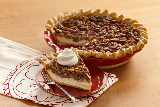 Cheesecake meets pecan pie in this smooth and decadent seasonal dessert.
