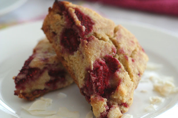 This dessert uses flax seeds, which are high in protein and fiber. In addition, the flax seeds add texture to contrast the soft raspberries.