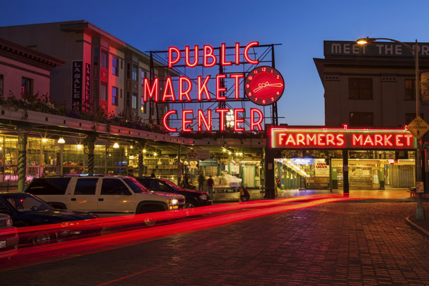 Sitting on the Puget Sound waterfront, the Pike Place Farmers Market has been around since 1907, when its first opening was considered "one of the greatest days in the history of Seattle" and was intended to connect locals with the farmers who were growing and producing their food.
