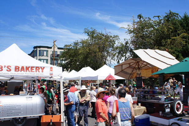 Given its central location in downtown Milwaukie, to some, the Milwaukie Sunday Farmers Market feels like "half produce market, half street fair." Entertaining with music styles from blue grass to jazz to Hawaiian, the market provides cooking demonstrations with fresh fruits and vegetables like mushrooms and huckleberries from Nature's Wild Harvest, fresh salmon from Columbia River Fish Company, and lamb from SuDan Farm.