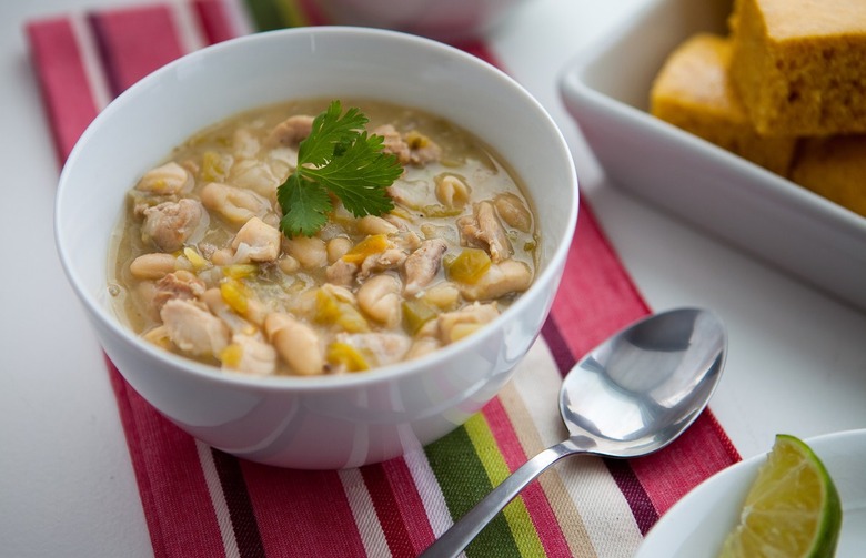 This slow-cooker white chicken chili couldn't be simpler. Use boneless chicken thighs for lots of flavor and a slightly lowered price tag.