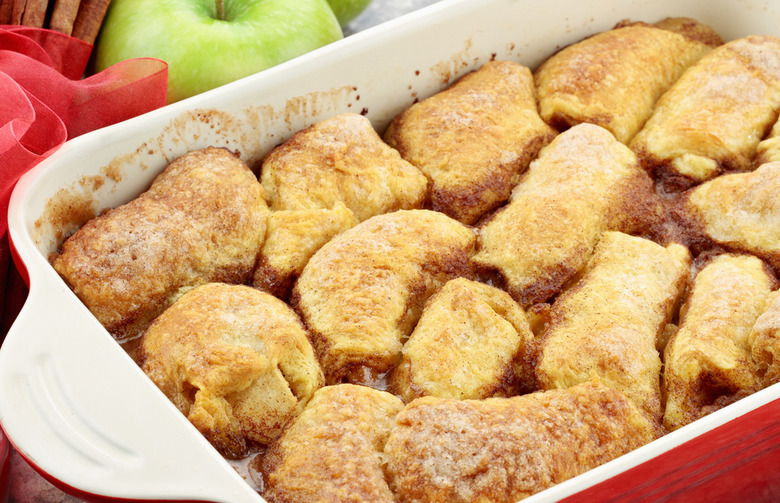 The crescent roll exterior makes these dumplings buttery and flaky. Dip them in caramel sauce or serve them with homemade ice cream for an additional treat.