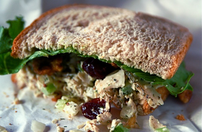 If you're tired of the same old mayonnaise-based chicken salad sandwich, try this sweet and tangy version that uses balsamic vinegar and lemon juice. It's perfect served on a dense, nutty, whole-grain bread.