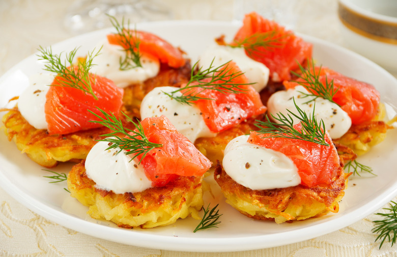 Wolfgang Puck keeps it classy with the addition of smoked sturgeon to a timeless tradition: potato pancakes.