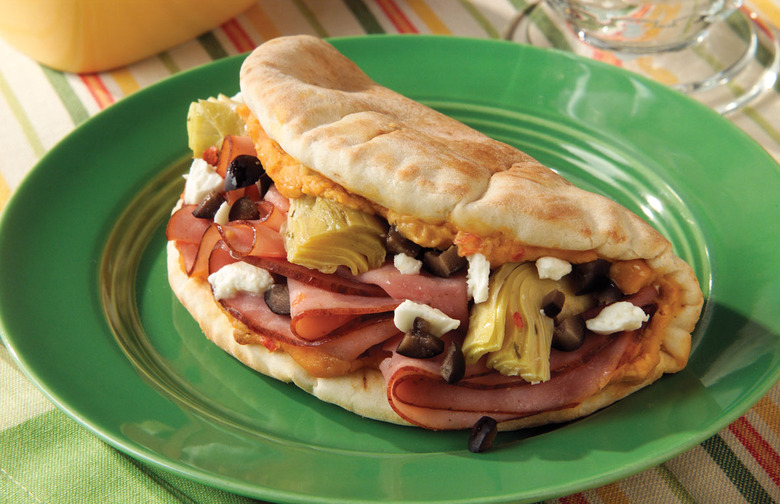 So fancy, it seems wrong to call it a mere sandwich. This Grecian delight features roasted red pepper hummus, ham and feta wrapped in a soft pita bread. Click here to see the recipe.