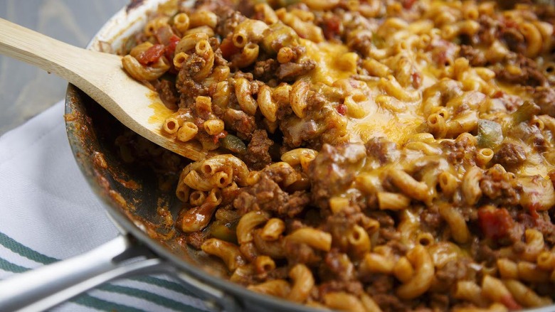 This Midwestern dish can be served with spaghetti and grated cheese topped over it.