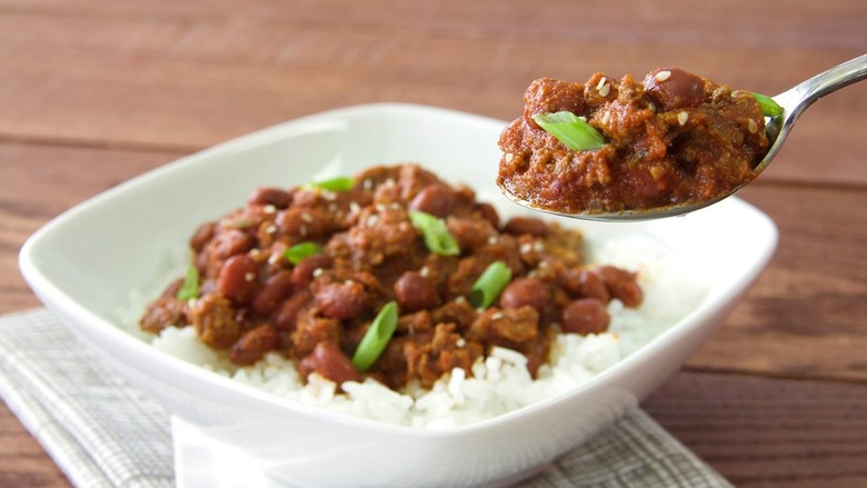 Liven up the flavors of your typical chili with traditional Korean ingredients such as soy sauce, rice vinegar, garlic, ginger and ground red pepper.
