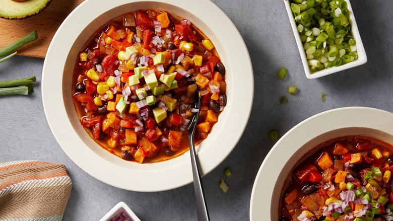 This chili is vegetarian, but it's still packed with flavor and protein.