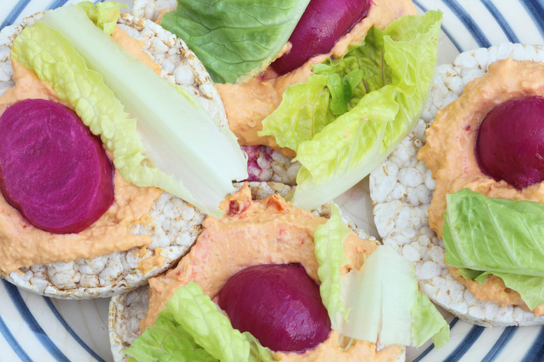 Medearis says rice cakes are delicious with low-fat toppings like spicy mustard or salsa.