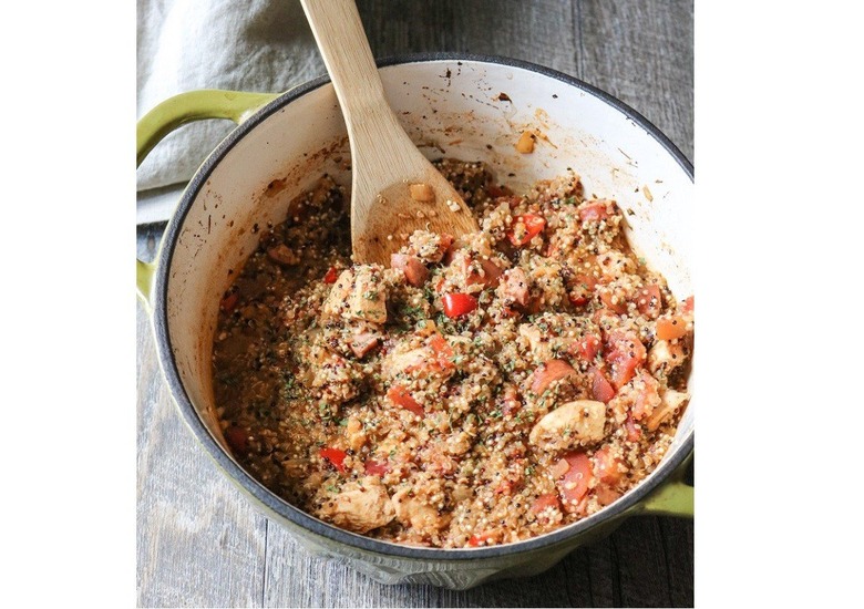"Dump and Stir." That's A Mind Full Mom's method for this one-pot jambalaya. Though the South is all about traditions, this easy stew takes those traditional, meaty jambalaya flavors and launches them into the twenty-first century with the addition of quinoa.