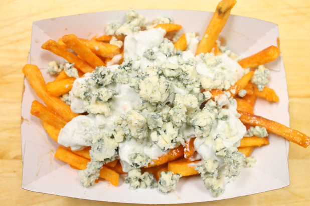 A plate of hot, spicy, and crispy wings with a side of bleu cheese dressing pretty much steals the show of any football Sunday. But when you think about it, it's really that combination of hot sauce and cheese dressing that makes it what they are, so why not substitute the chicken wings for some steaming hot fries, like in this recipe? Even your vegetarian friends will be happy fans.