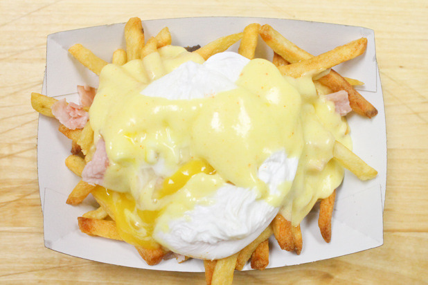 Sultry, buttery hollandaise, crisp ham, and a yolky poached egg isn't quite the same experience as enjoying those three things over a toasted English muffin. We think you'll agree about them being served over fries, as well.