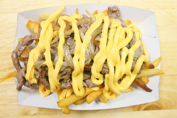 A classic Philly cheesesteak, a mixture of sautéed steak and onions smothered in Cheese Whiz and wedged into a hoagie, can really make a crowd go nuts. Next time you're craving one, though, skip the hoagie and try tossing that meat, onion, and cheese combination with fries. We don't think you'll be disappointed.