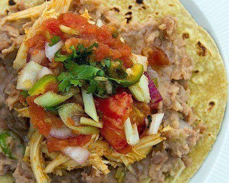 Whip up these tostadas on a typical busy weeknight — they are very flavorful thanks to the pinto beans and the spicy serrano peppers.