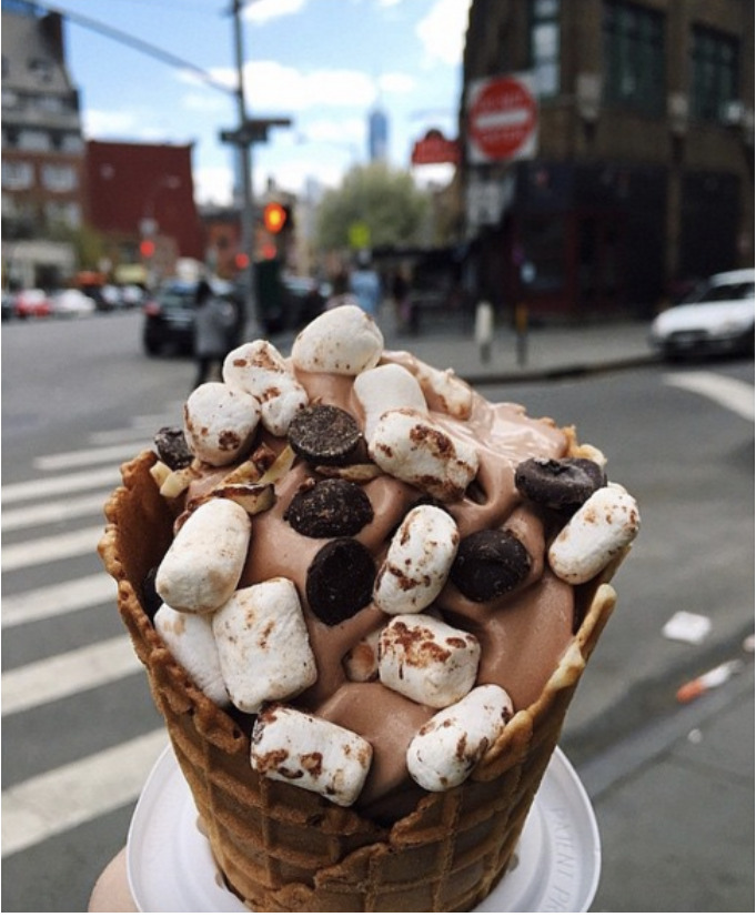 You might be lucky enough to find this at your local ice cream shop, or make it yourself by starting with chocolate ice cream and simply adding mini marshmallows, crushed up graham crackers, and chocolate chips.