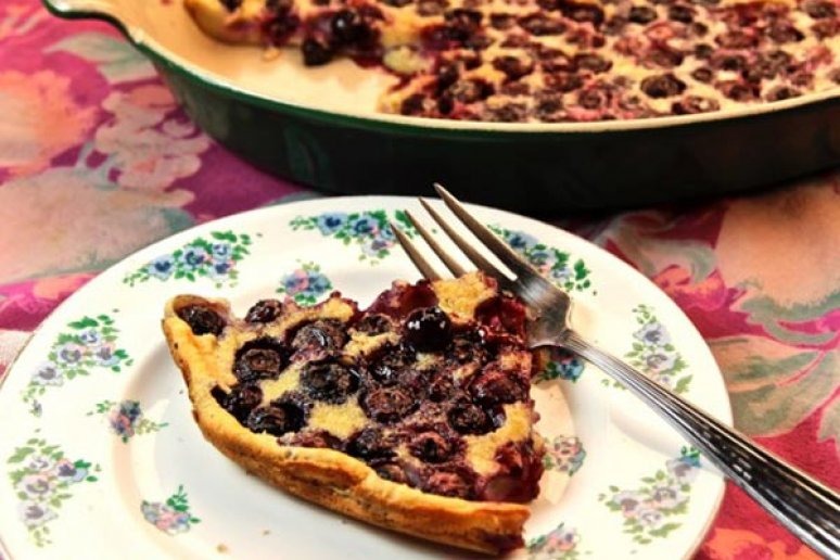 In some families, the kids and significant others are just as adept as Mom in the kitchen, but I wanted to develop a recipe that was fairly foolproof for whomever was going to (wo)man the stove. Oven-baked pancakes came to mind, but they often fall flat. Then it occurred to me that they have similarities with clafoutis, the classic French dessert that typically features mid-summer cherries. Both are rather custardy in their pastry-ness and who doesn't like the idea of dessert for breakfast? They both basically involve whipping up an easy pancake or crepe-like batter, pouring it into a heat-proof pan and then letting the oven do the work. Why stand over a hot stove cooking slice after slice of French toast? In keeping with a spring theme, I present you with a Lemon Blueberry Clafoutis.