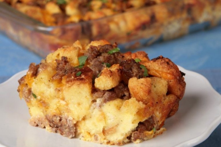 This brunch casserole includes all the breakfast pre-requisites — eggs, sausage, toast — in one dish; perfect for serving a crowd this Mother's Day brunch without creating too much of a kitchen nightmare.