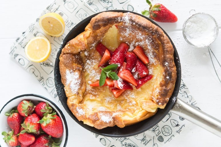 This soufflé-like pancake needs an extra-hot skillet to rise correctly, and while this recipe can be made any time of year with whatever add-ins you prefer, we can't help but love sweet, spring and summer strawberries in ours.
