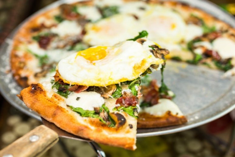This brunch pizza is perfect for the mom who prefers a savory start to her day over sweet. Use store-bought pizza dough to simplify the cooking process and cook the eggs only until the whites are set, leaving the yolks runny.