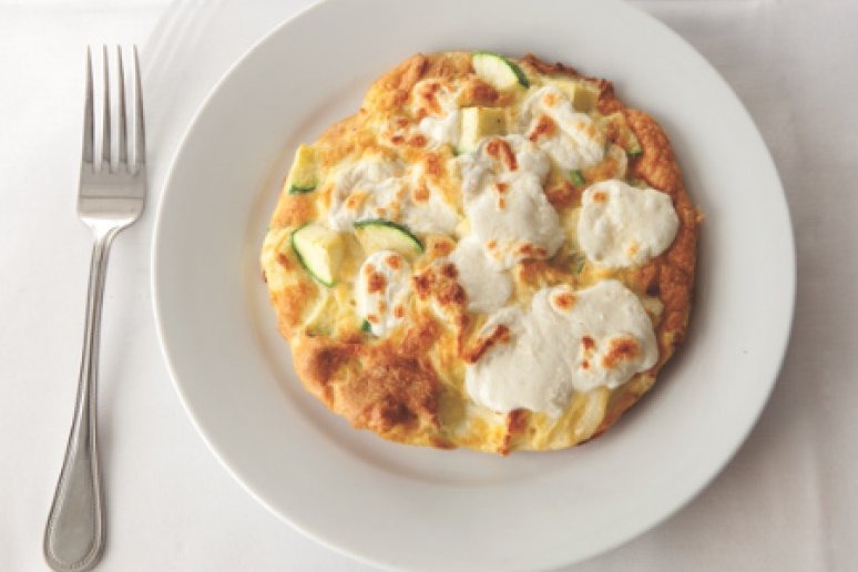 I like to prepare a frittata the same way I do an omelette, but instead of rolling the cooked eggs onto a plate, I serve the frittata open-face, as with the zucchini and mozzarella frittata here. One trick is to flash the pan into the oven for just a few minutes to heat the cheese. But the eggs shouldn't be cooked any longer than with an omelette. — John Besh