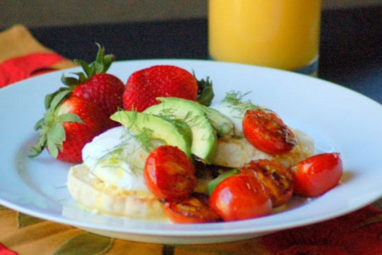 Swap the traditional Canadian bacon for sliced avocado in this California-style eggs benedict recipe. Mom will love the roasted tomatoes and goat cheese garnish.