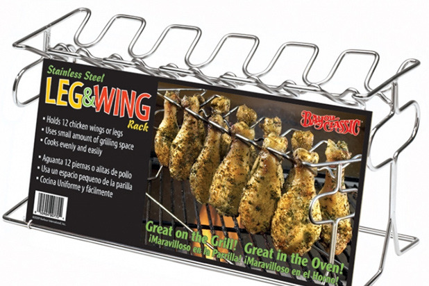 Set it and forget it hardly ever applies to grilling, hence why the grill master is such an important title. It takes a strong person to resist the urge to mingle over some brews with their friends so they can concentrate on the grill. But a tool like the Folding Leg or Wing Rack ($5.50) makes it possible, as it vertically suspends wings or legs inside the grill and requires no turning.