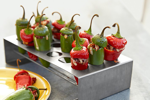 Your grill has cooked many a main dish in its day. Why not spice it up? Your barbecue can be good for crowd-pleasing appetizers, too, so try the Jalapeño Pepper Roaster ($19.95). This nifty device allows peppers to stand upright, keeping stuffing in and roasting them beautifully.