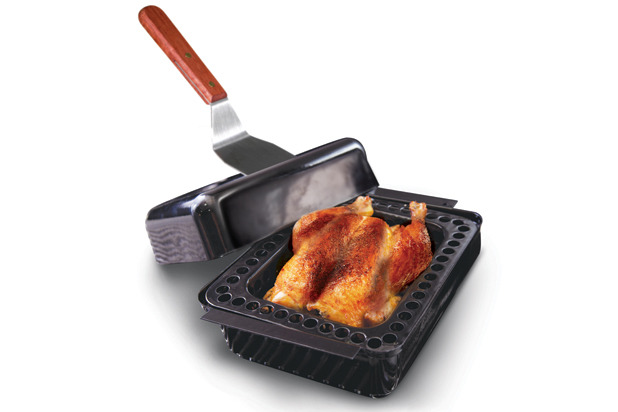 Expensive rotisserie ovens can take up space and time you may not have when you desire flavorful chicken. With the help of the Weber Original Poultry Roaster ($16.99), you can plop a whole bird on the grill without fear of charring or uneven cooking. Just close the lid and let all of the smoky glory your grill provides crisp the skin and lock in the flavorful juices.