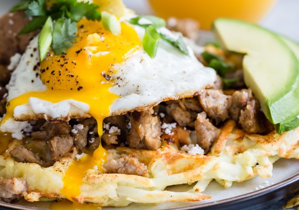 As the season changes, so should your breakfast routine! Ditch the boring bowl of cereal for crispy hash browns topped with beans, Gimme Lean Sausage, cotija cheese, cilantro and chilies. For even more veggies top with fresh avocado and pico de gallo!