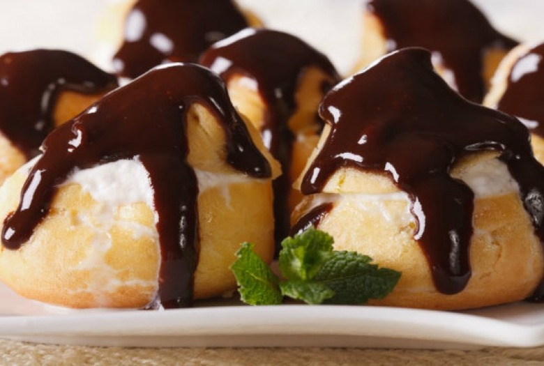 Chocolate Cream Puffs with Salted Caramel Custard FillingA sweet caramel custard