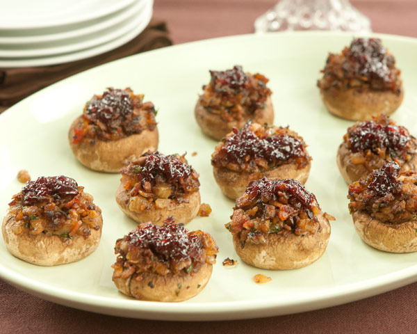Give your stuffed mushroom appetizer a makeover with a little kick and a dab of tart-sweet cherry to contrast with salty bacon.