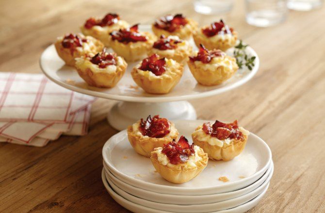 Baked Cheese and Bacon Jam Bites. Use store-bought phyllo cups for this easy, cheesy recipe. If you have sheets of phyllo dough on hand, cut out circles slightly larger than the cups of a mini cupcake pan and fit them inside.