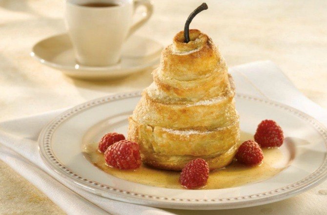 Wrapped Pears with Vanilla Bean Sauce. Baked pears for the people who don't like baked pears. Drizzle vanilla simple syrup over pears wrapped and baked in phyllo dough for a simple and elegant dessert.