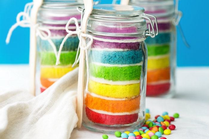 Cake push-pops take the cake pop trend to a whole new level. These cake push-pops work just like your favorite frozen push-pops from your younger years. To make these sweet treats, you will need to buy push-pop containers, like these, multiple cake pans, and food coloring. Pick your favorite cake and frosting recipe and make according to the instructions. Then, cut out pieces of cake and layer them with the frosting into the cake pops. Alternate cake colors for a beautiful and vibrant presentation.