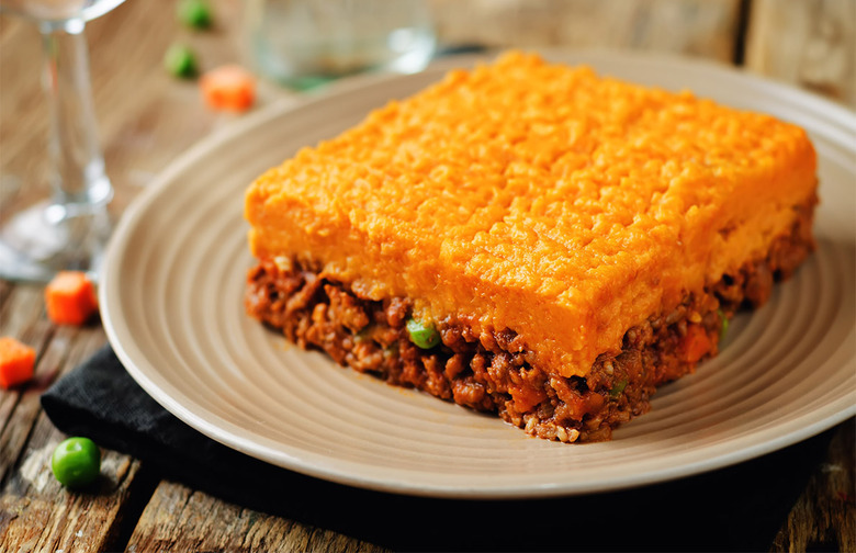 Replace the regular mashed potato with mashed sweet potato for a new take on a hearty and savory cottage pie.
