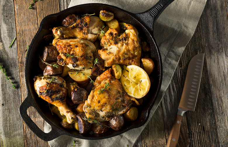 This easy and delicious roast chicken with potatoes comes together wonderfully in a single skillet, making it one of the many one-pot wonders you can cook all year round!