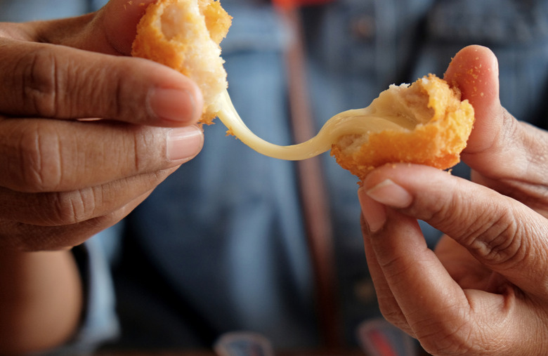 These crispy potato puffs are like a loaded baked potato in your hand. Sour cream, chives, bacon, Cheddar cheese, and smooth mashed potatoes — it's all right there in one tasty bite.