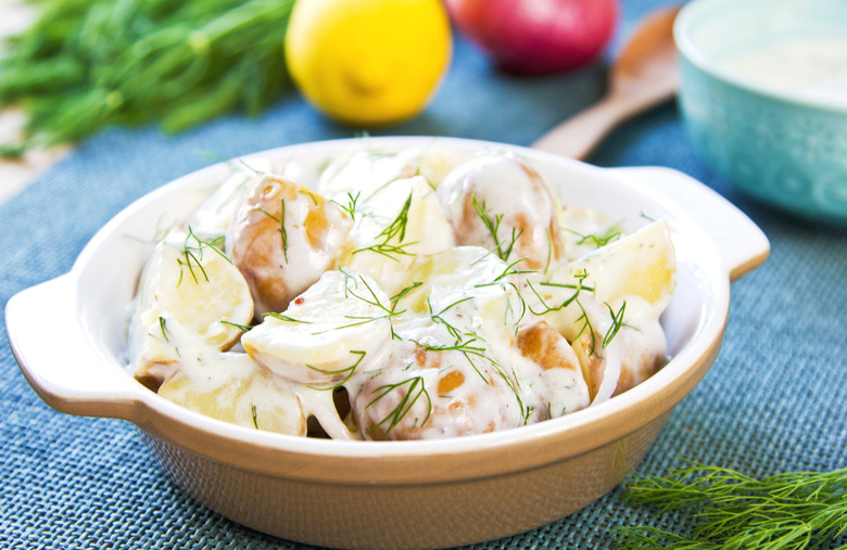 If you're not one for mayonnaise, this easy potato salad swaps out the thick condiment for two lighter options: sour cream and Greek yogurt. Cucumber and dill are added for a fresh burst of flavor, making this a well-rounded potato salad with all of the flavors we know and love.