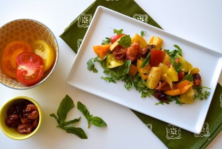 Simple-to-make panzanella includes grape, heirloom, and sun-dried tomatoes and is topped with fresh basil and a light cracker crunch. It's perfect as a side or appetizer. Find the recipe here.