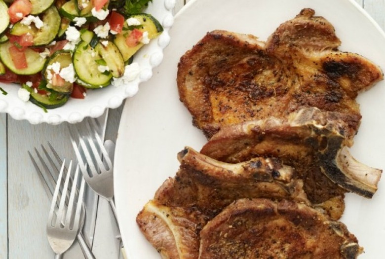 Thin-cut, bone-in, lean pork rib chops cook in minutes and offer a hearty, meaty richness that can be extra satisfying. Oregano, thyme, and paprika season the chops, and the fond (browned bits) left in the pan later flavor the zucchini as it sautés. Check out the Greek Pork Chops With Zucchini and Feta recipe here.
