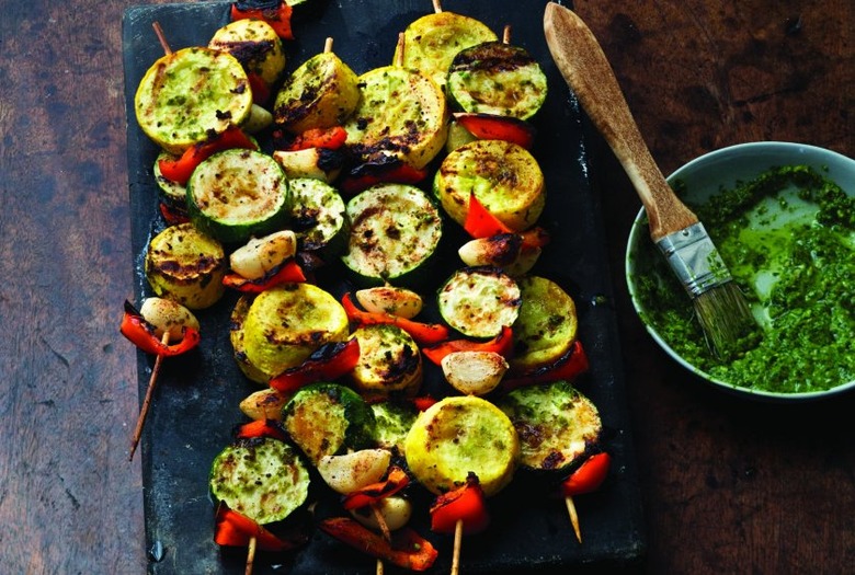 Grilled Garlic and Summer Squash Skewers With Chimichurri