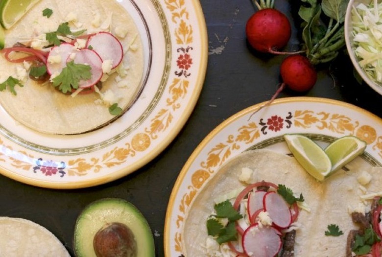 If you're already outdoors and grilling up some steaks, why not slice them up and eat them in a tortilla with lots of fresh and delicious toppings? Shredded cabbage and thinly sliced radishes add amazing crunch to soft shell tacos; plus pickled red onions and a squeeze of fresh lime juice add a bright, tart flavor to the meat. Get the recipe here.